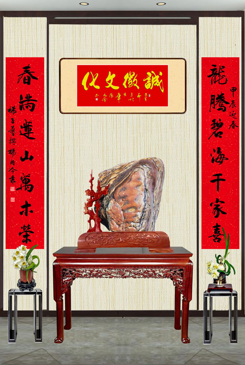 八耳天成联,联天迎龙年。
